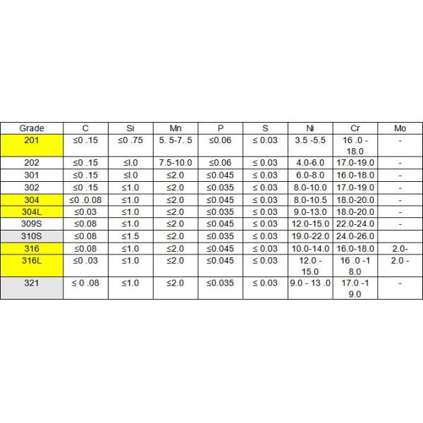 | Material | 304N, 316Ti, 316L, 316, 321, 430, 304, 409L, 904L, 317L |